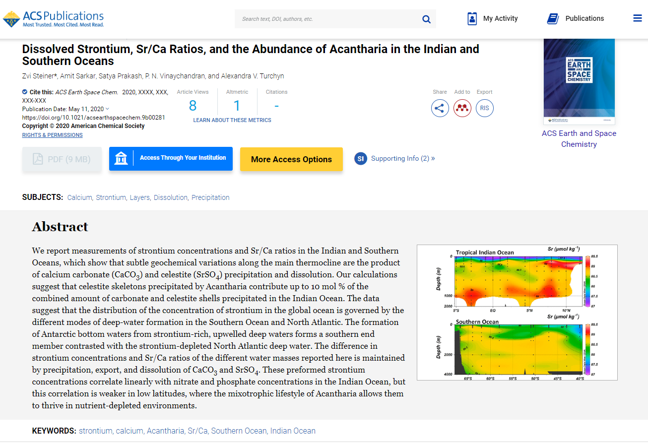 12 | Dissolved Strontium, Sr/Ca Ratios, and the Abundance of Acantharia in the Indian and Southern Oceans | 2020 | ![]() |