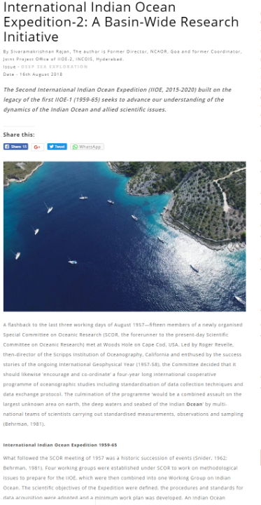 International Indian Ocean Expedition - 2 : A Basin - Wide Research Initiative. Geography and You; Issue: Deep Sea Exploration,16 th August, 2018 | 2018 | |