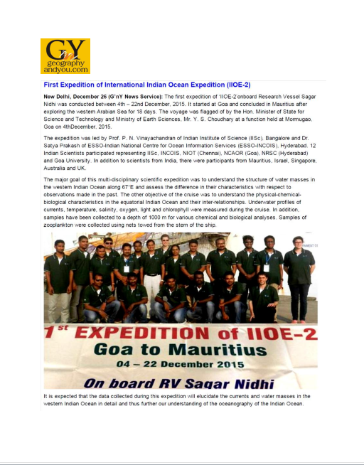 First Expedition of International Indian Ocean Expendition GnY News Service ,26 December 2015