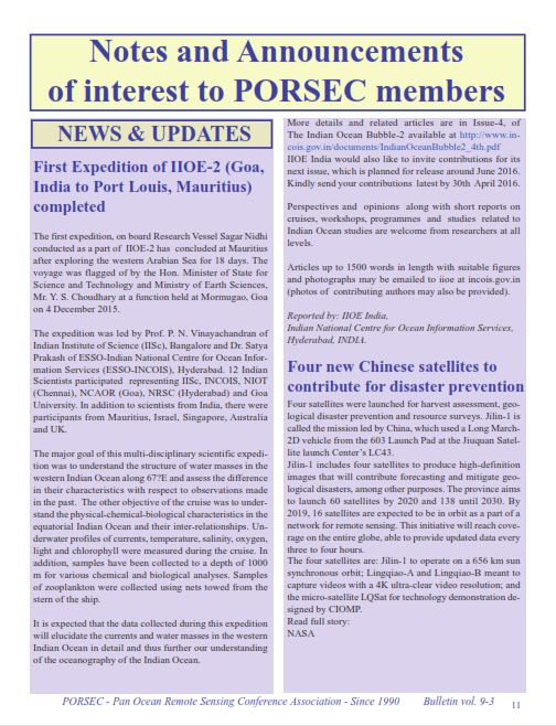 Notes and Announcements of interest to PORSEC members , Bulletin of the PORSEC Association,Volume 9.3, December, 2015