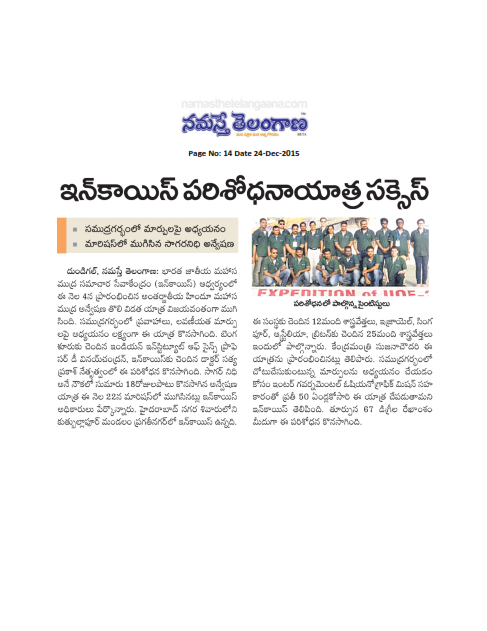 Successfully completed Indian Ocean Expedition Namaste Telangana, December 24, 2015