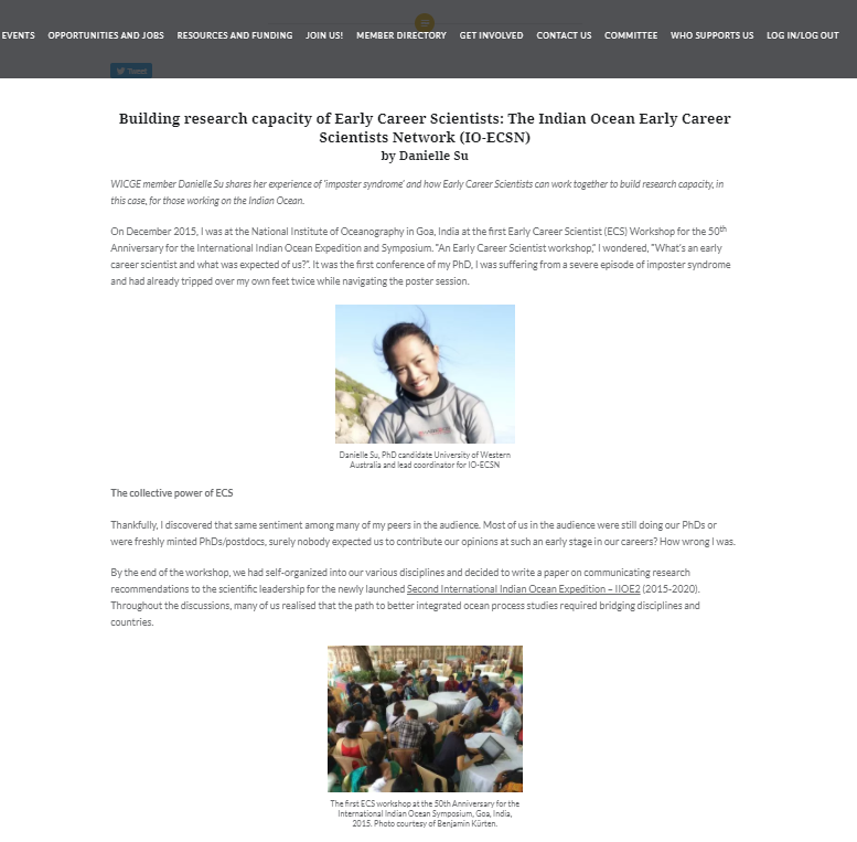 Building research capacity of Early Career Scientists: The Indian Ocean Early Career Scientists Network (IO-ECSN) | 2018 | |